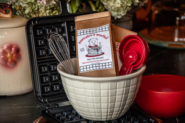 Pantcakes 'n Woofles soft treat mix for dogs is made from only the freshest and finest whole grains and flours available. It's fun and easy to make, no rolling or baking. Just follow the simple instructions on the back to mix up a batch and cook on your griddle or in your waffle maker. Each bag contains enough mix to make at least six batches – depending on size over 100 treats! Treats are easy to chew and swallow (great for older dogs). Great gift for dog owners and dog lovers alike -- dogs gobble 'em up!